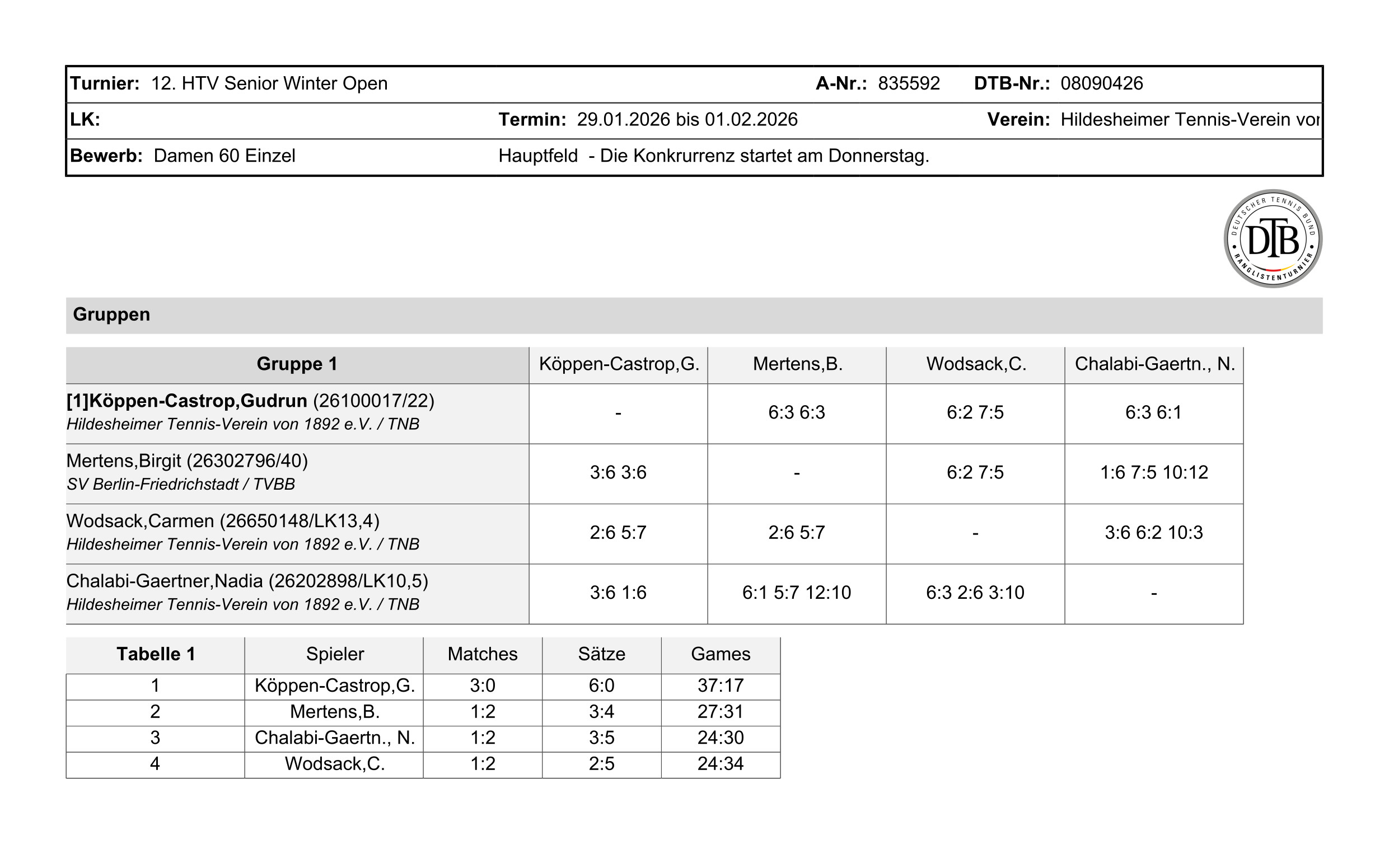 DTB-Ranglistenturnier mit LK-Wertung