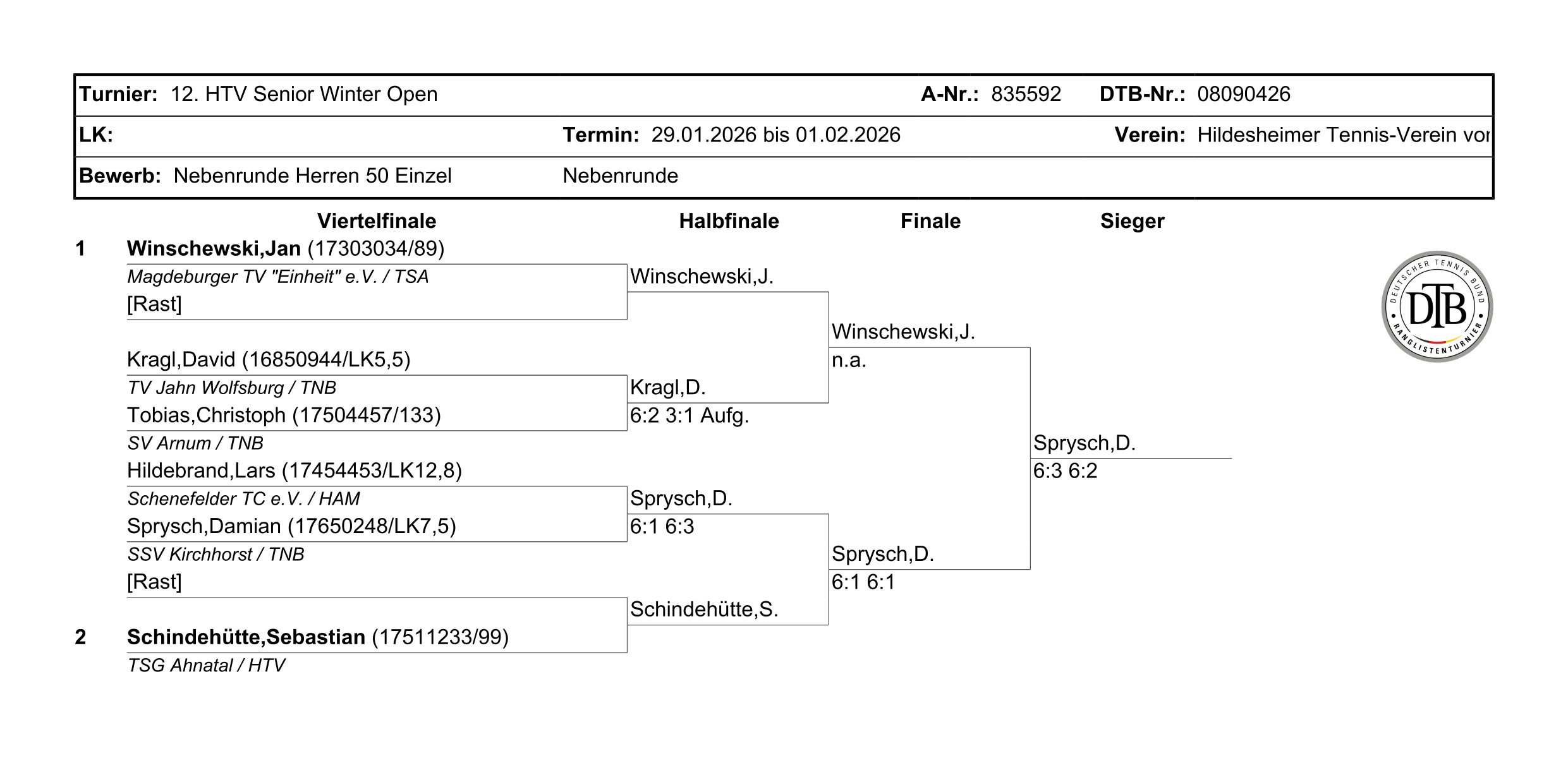 B. Schrader (Hildesheimer Tennis-Verein von 1892 e.V.) - M. Ruhl (Tennis- und Ski-Club e.V. Göttingen) 6:2 6:2