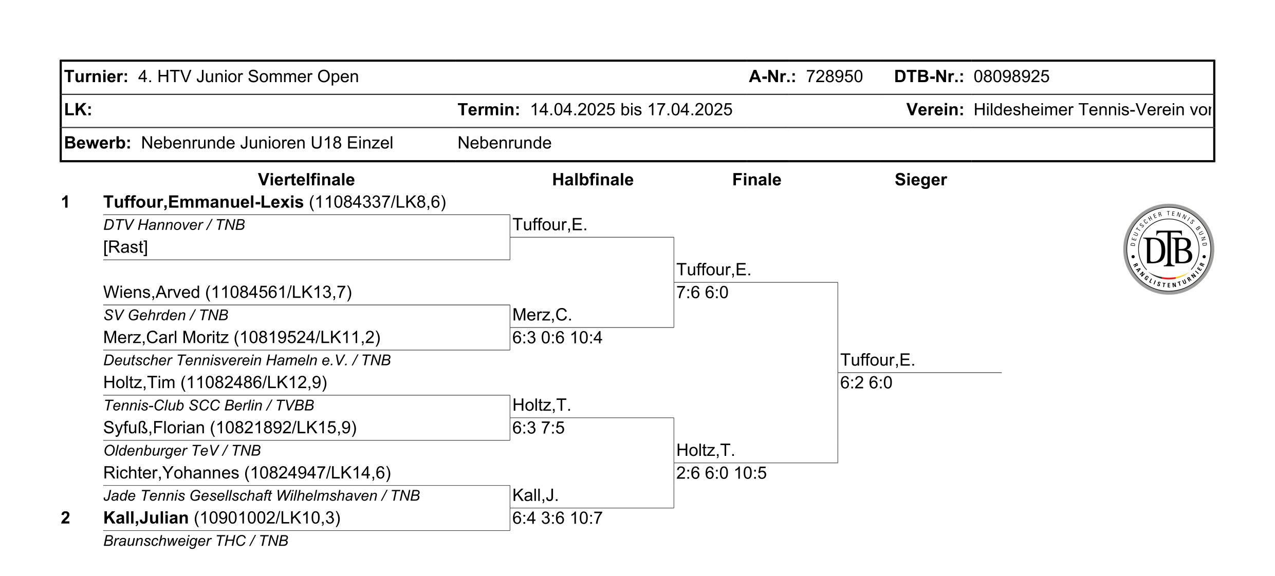 D. Tuffour (DTV Hannover) - Z. Grimmig (MTV Wolfenbüttel) 6:3 6:3