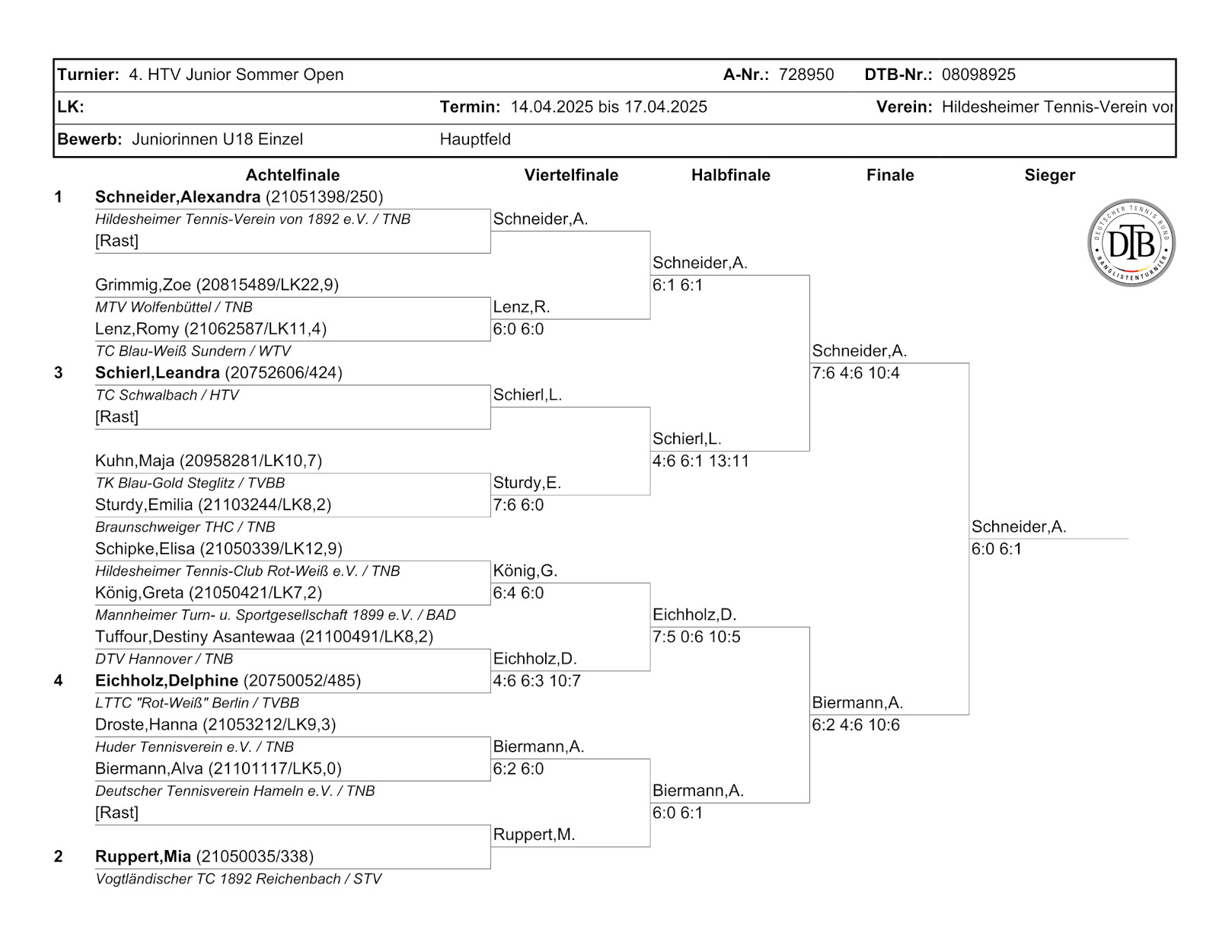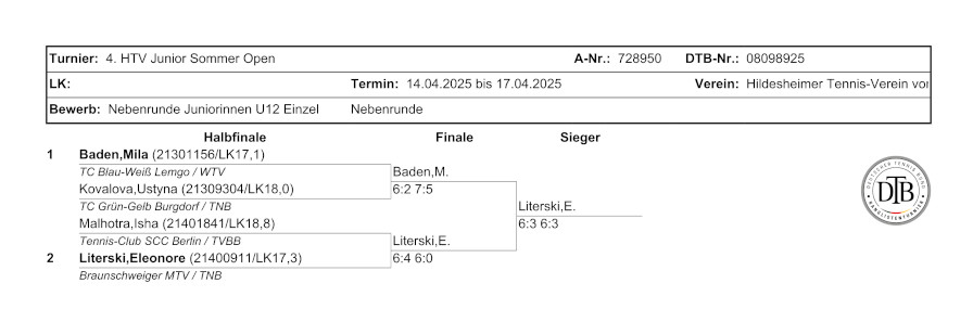 A. Schneider (Hildesheimer Tennis-Verein von 1892 e.V.) - A. Biermann (Deutscher Tennisverein Hameln e.V.) 6:0 6:1