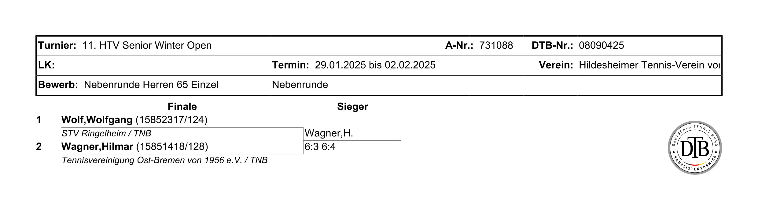 H. Wagner (Tennisvereinigung Ost-Bremen von 1956 e.V.) - W. Wolf (STV Ringelheim) 6:3 6:4