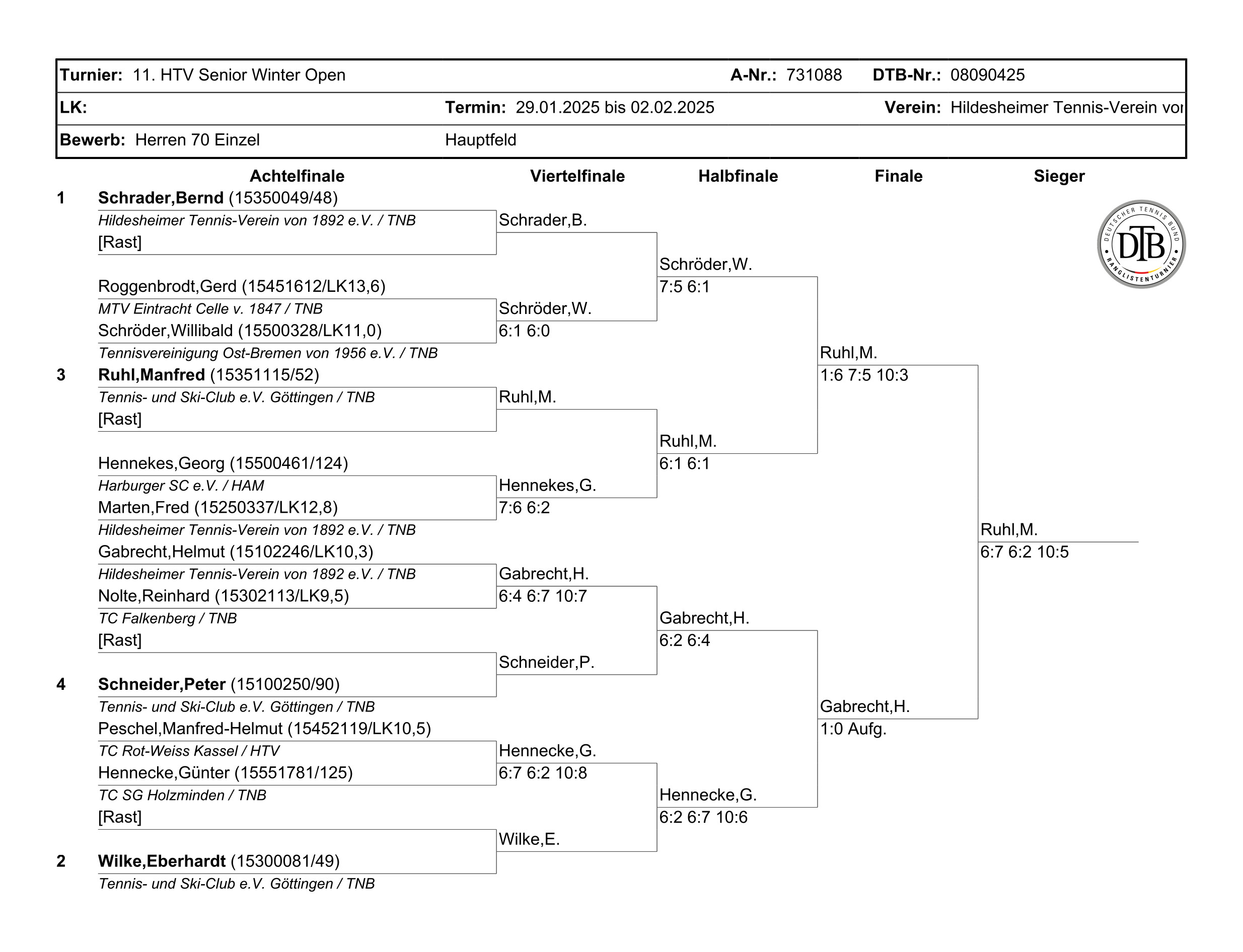 M. Ruhl (Tennis- und Ski-Club e.V. Göttingen) - H. Garbrech56 (Hildesheimer Tennis-Verein von 1892 e.V.) 6:7 6:2 10:5