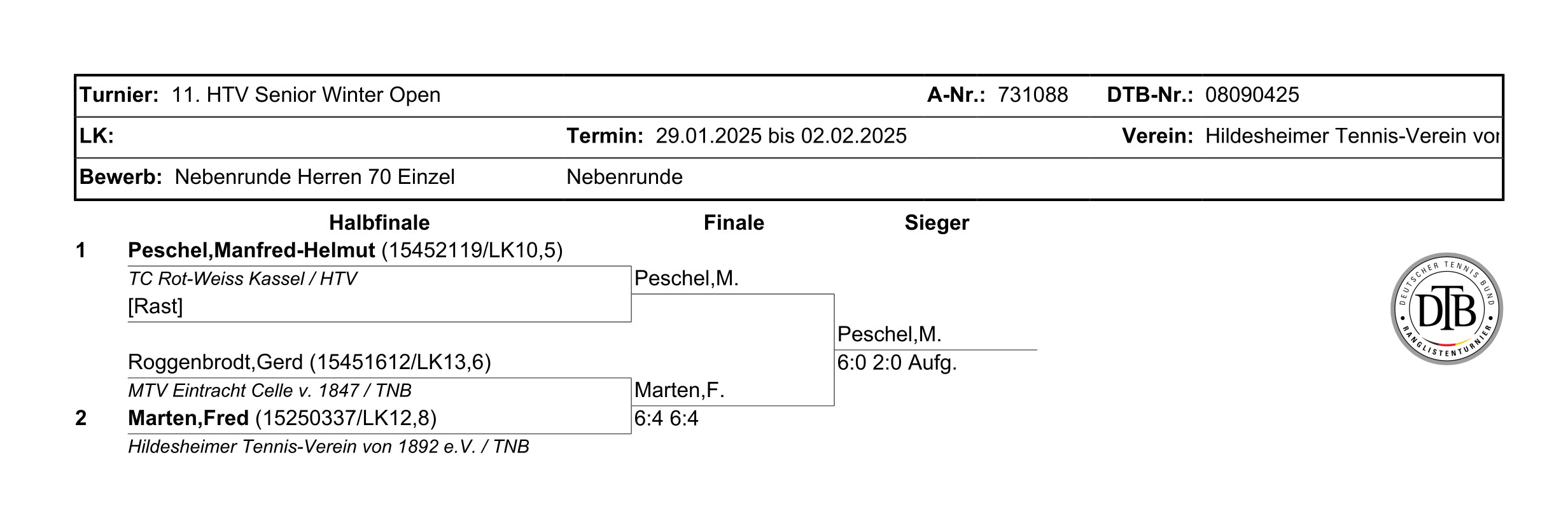 M. Peschel (TC Rot-Weiss Kassel) - F. Marten (Hildesheimer Tennis-Verein von 1892 e.V.) 6:0 2:0 Aufg.