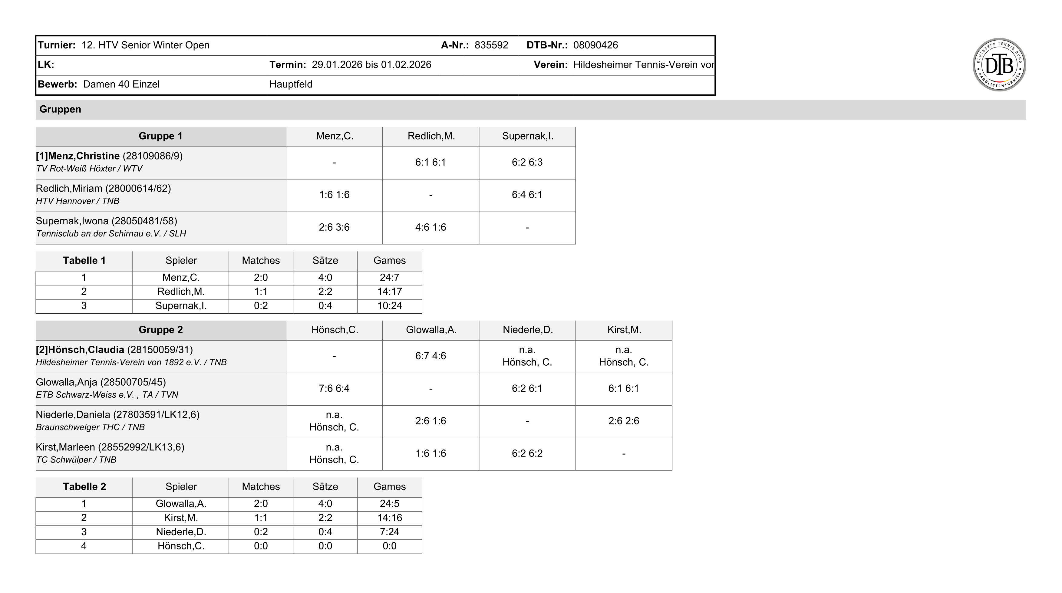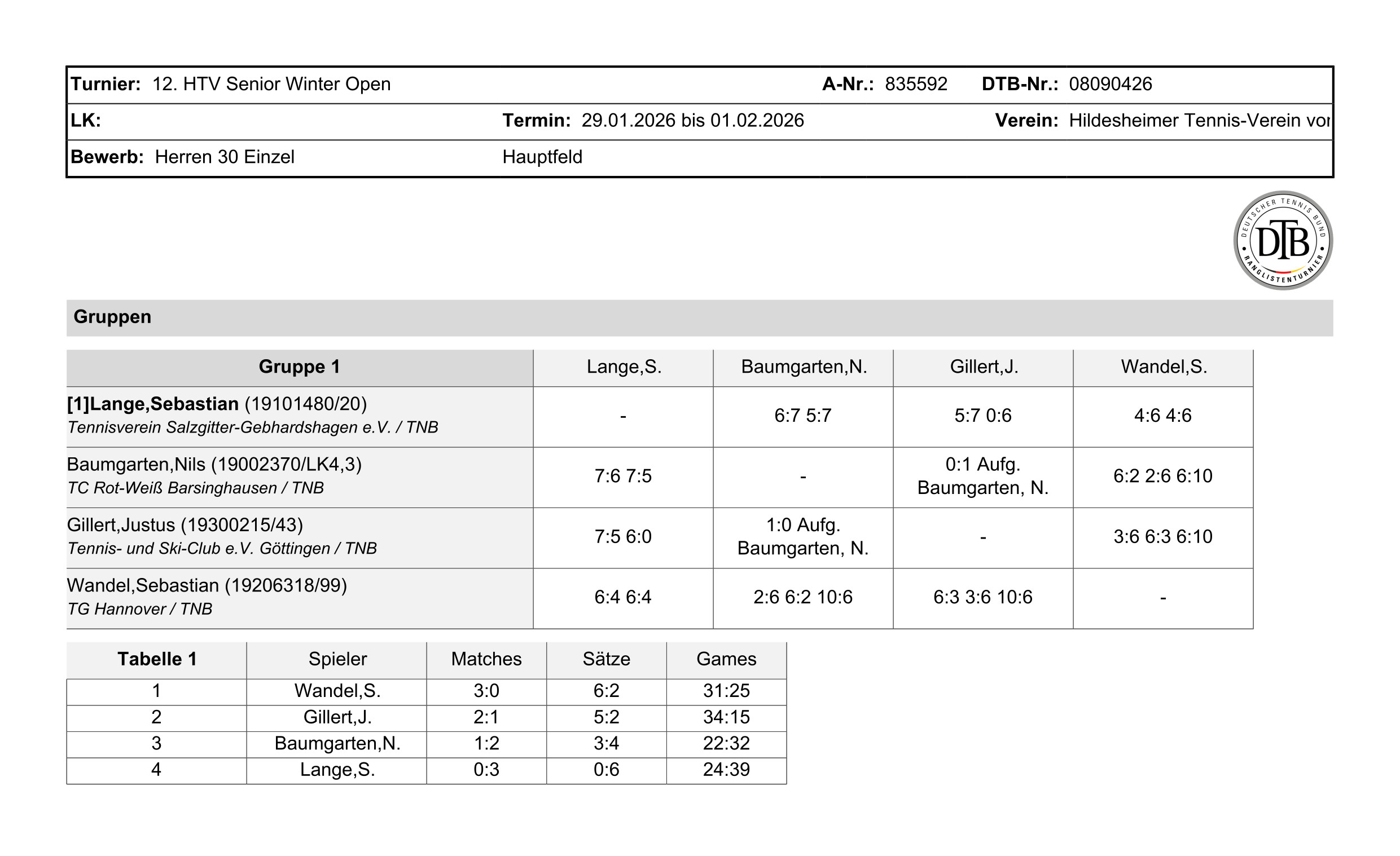 DTB-Ranglistenturnier mit LK-Wertung