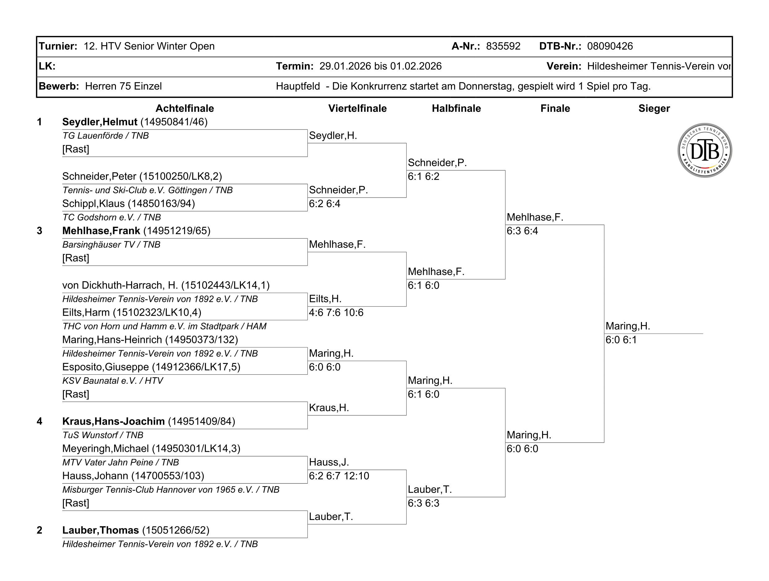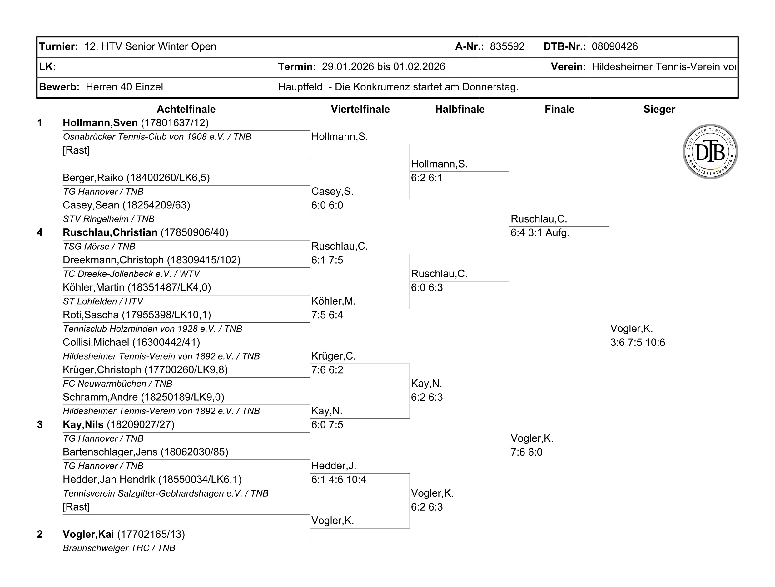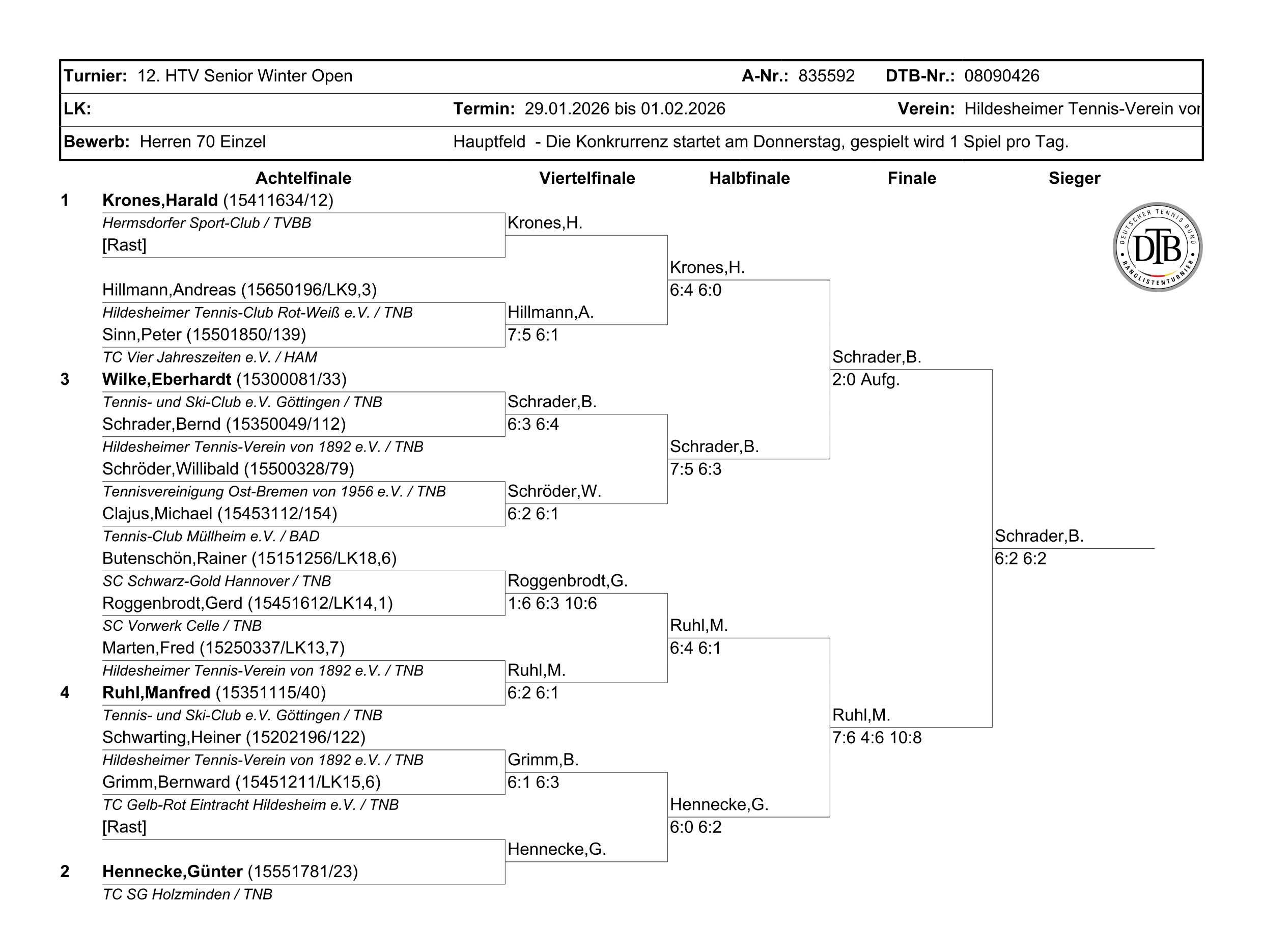 B. Schrader (Hildesheimer Tennis-Verein von 1892 e.V.) - M. Ruhl (Tennis- und Ski-Club e.V. Göttingen) 6:2 6:2