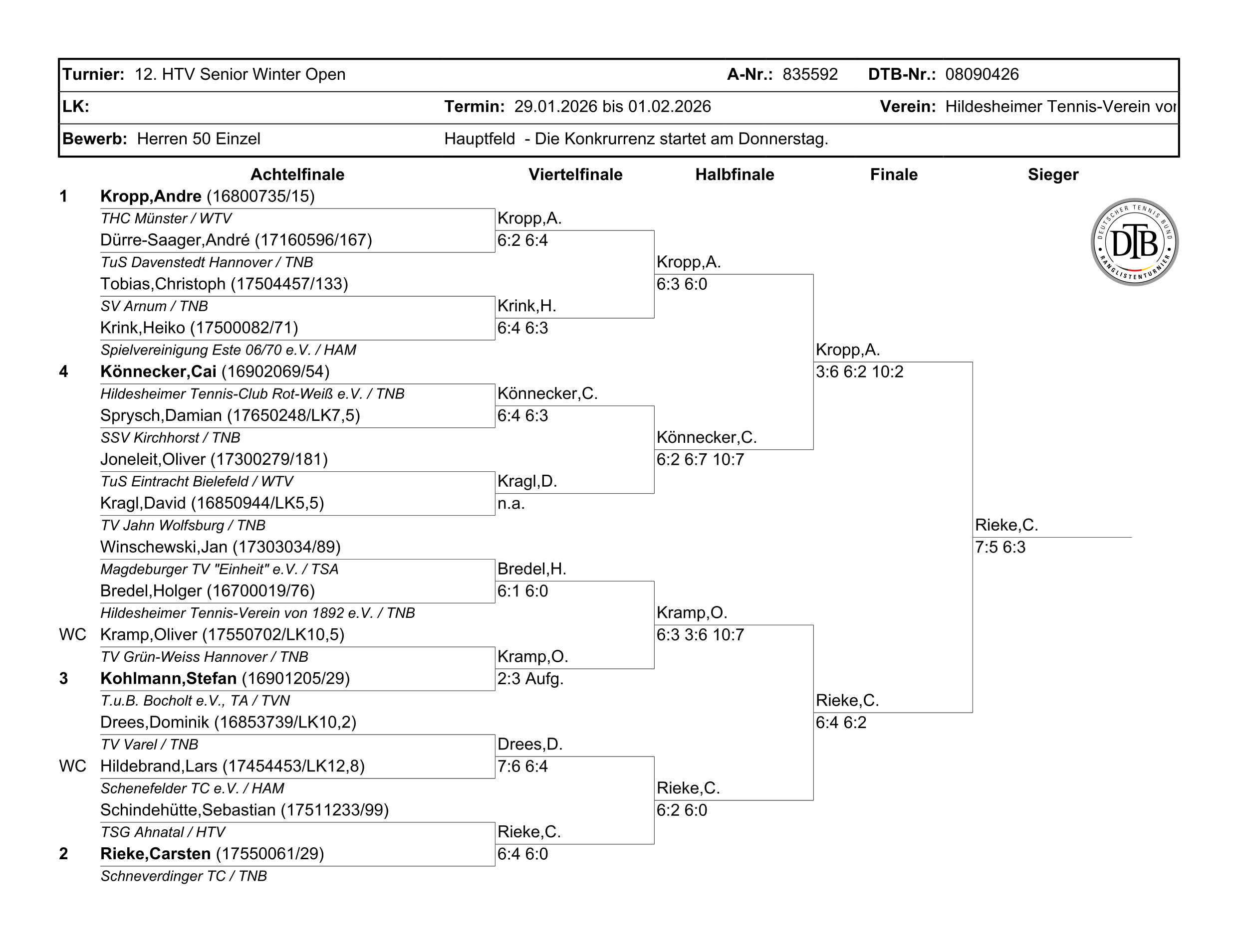 C. Rieke (Schneverdinger TC) - A. Kropp(THC Münster) 7:5 6:2