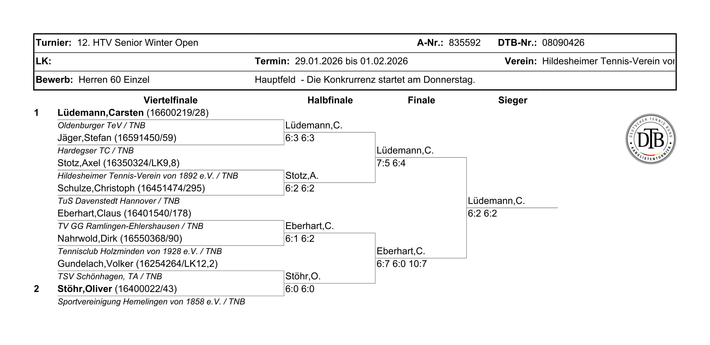C. Lüdemanmn (Oldenburger TeV) - C. Eberhardt (TV GG Ramlingen-Ehlershausen) 6:2 6:2