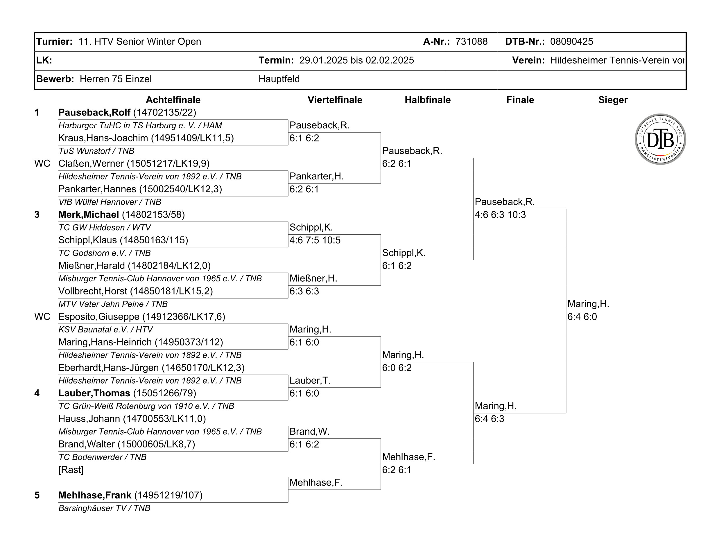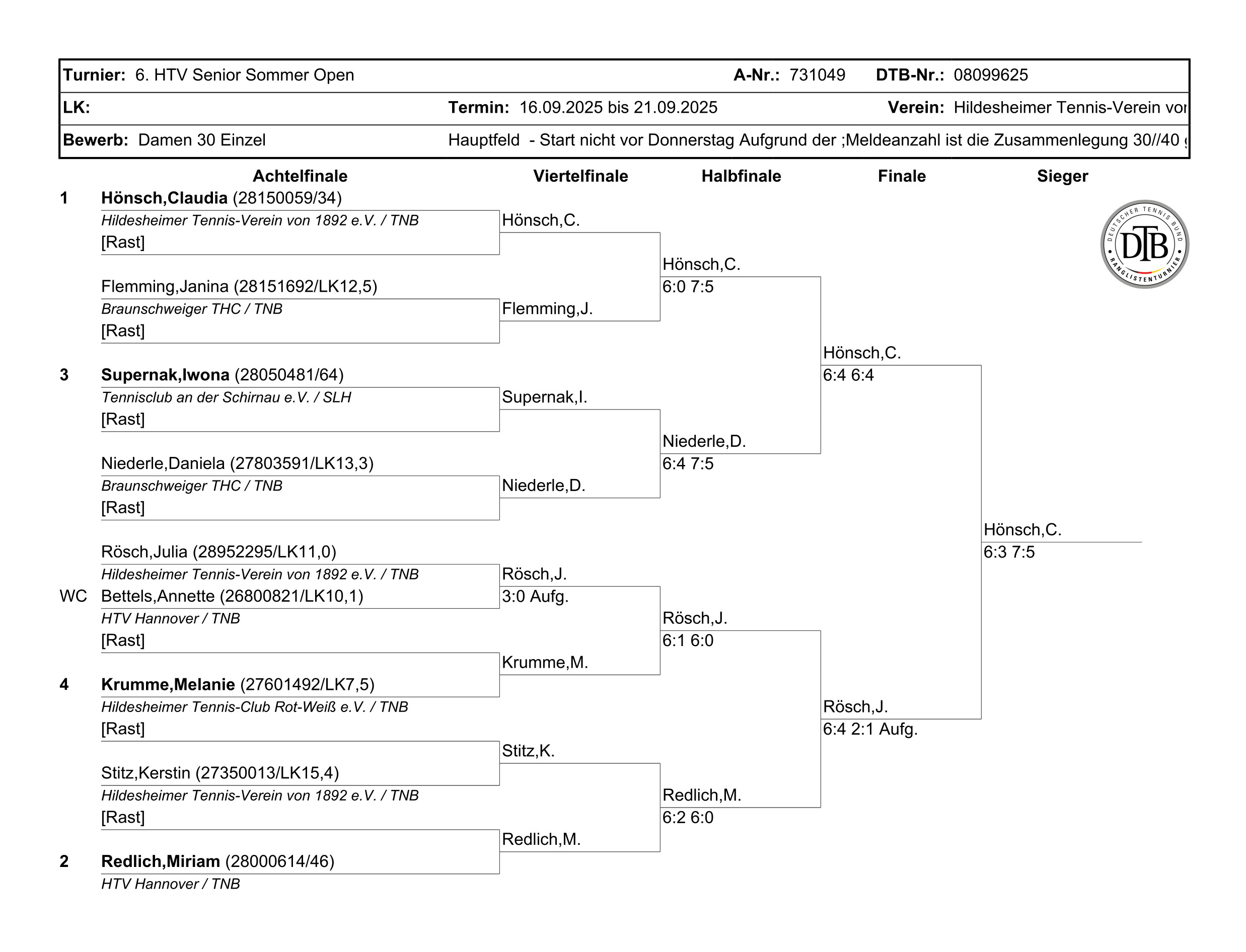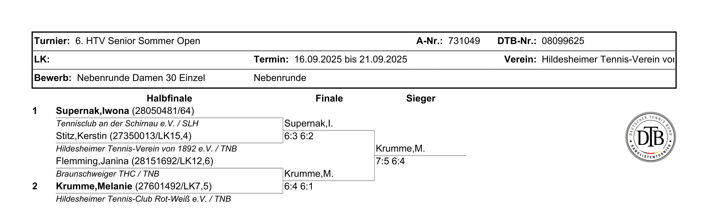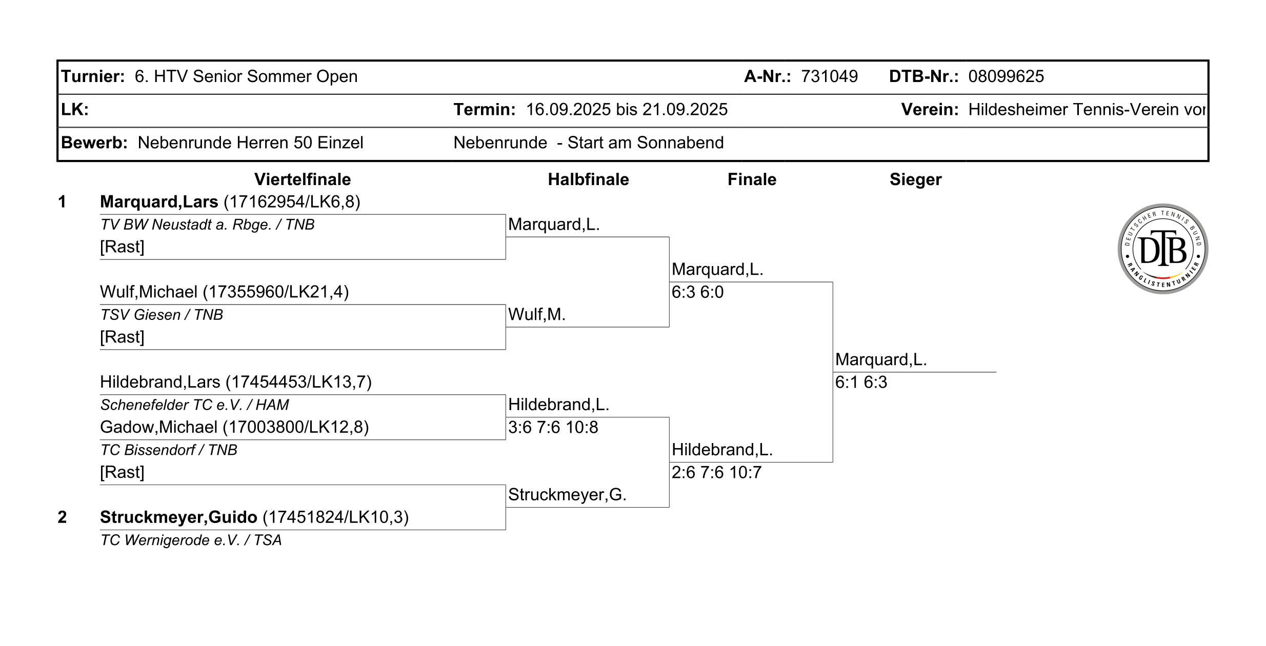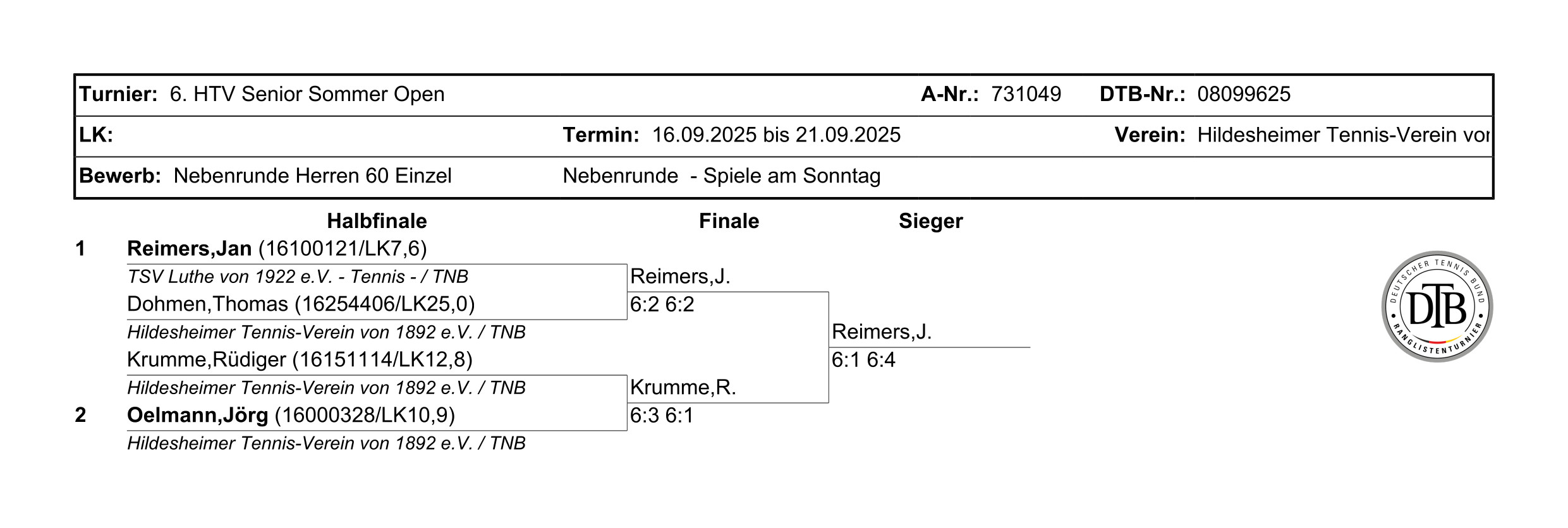 J. Reimers (TSV Luthe von 1922 e.V. - Tennis -) - R. Krumme (Hildesheimer Tennis-Verein von 1892 e.V.) 6:1 6:4