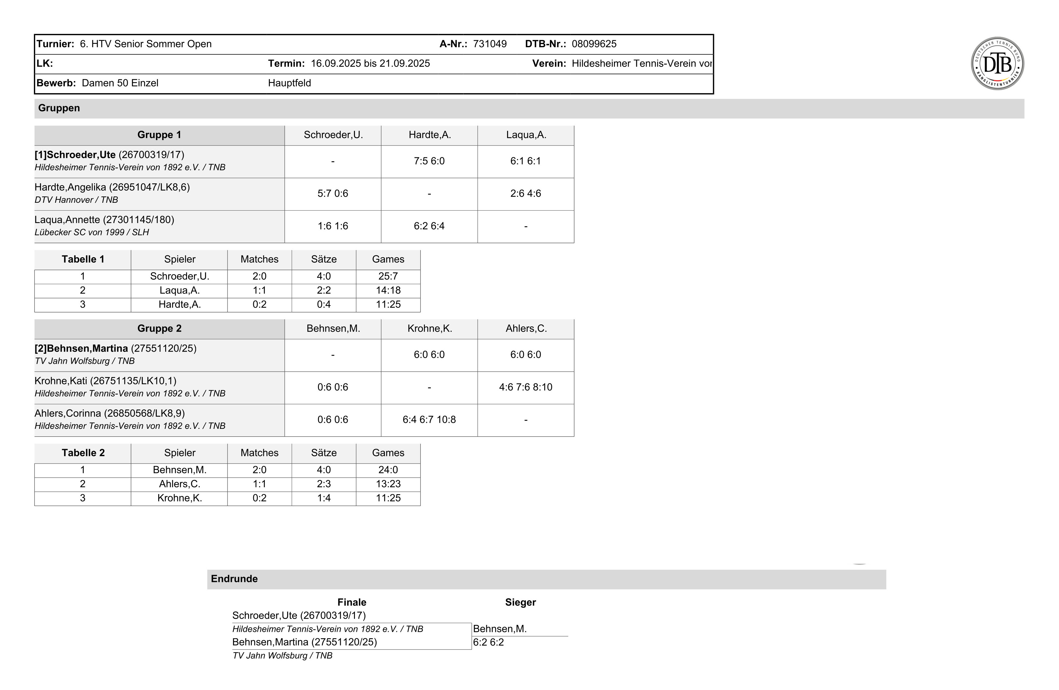 M. Behnsen (TV Jahn Wolfsburg) - U. Schroeder (Hildesheimer Tennis-Verein von 1892 e.V.) 6:2 6:2