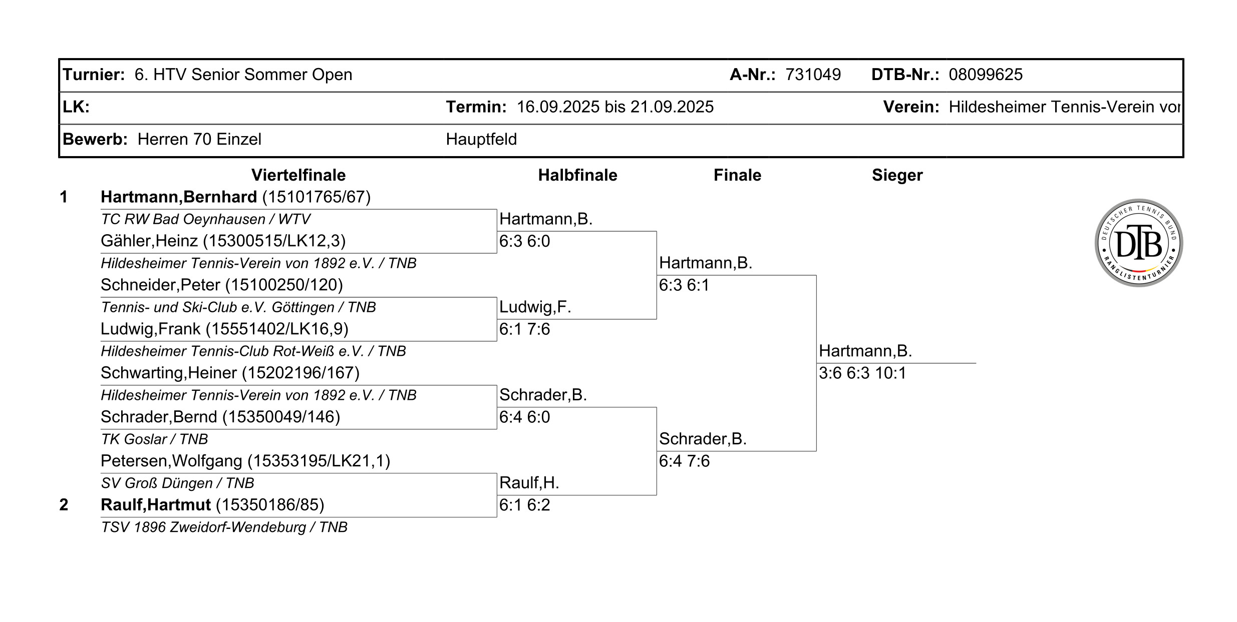 B. Hartmann (TC RW Bad Oeynhausen) - B. Schrader (K Goslar ) 3:6 6:3 10:1